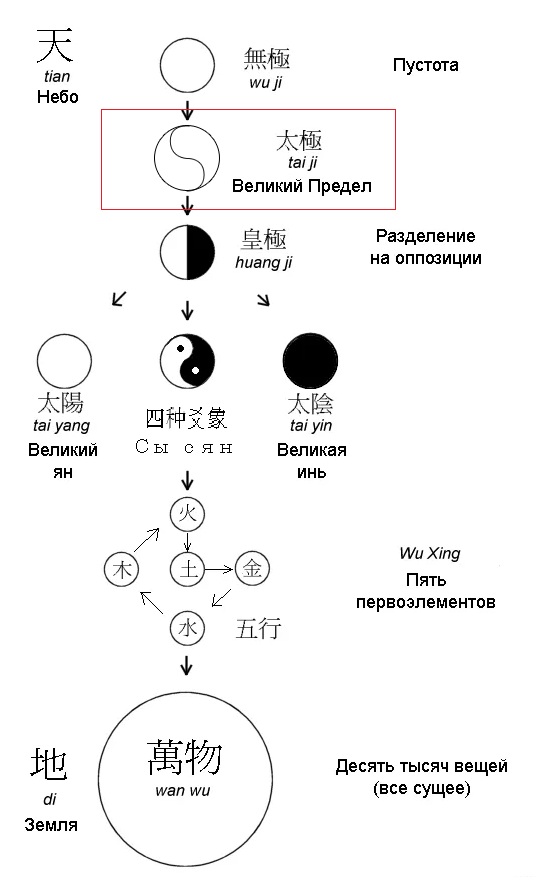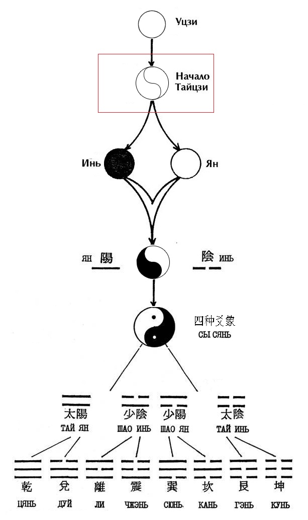 Рассмотрим место символа «Великий Предел» в иерархии этапов исходного космогенеза в представлении китайской философии в изображениях.
