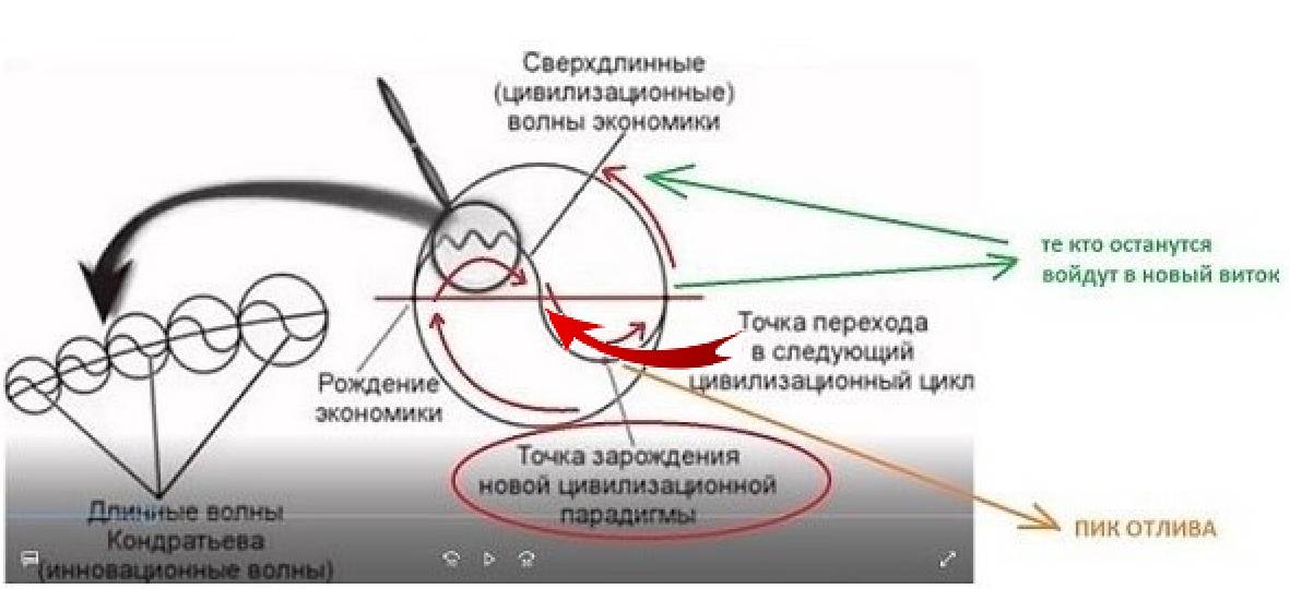 Согласно описываемой модели, общество переживает сегодня этап переходного S-образного элемента и находится в петле Времени.