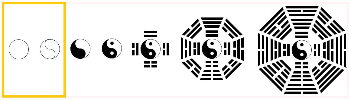 Рассмотрена модель иерархии этапов исходного космогенеза представлении китайской философии, в схематической форме последовательности, в части выделенной желтым цветом на рис.39.