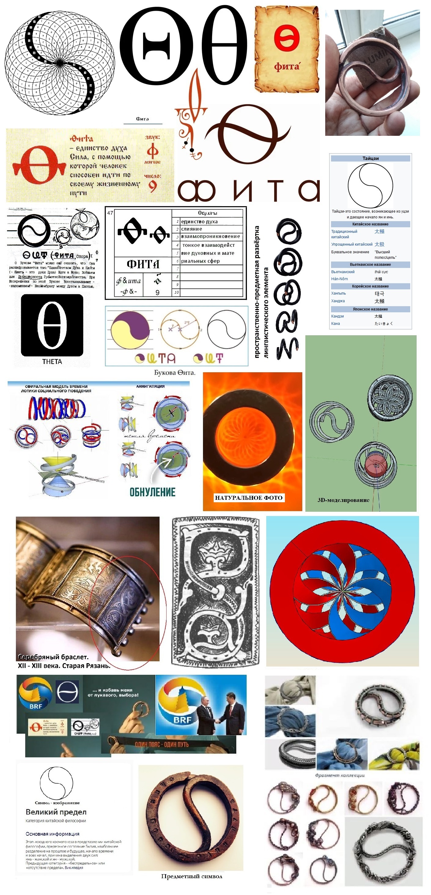 Представлено материальное физическое устройство тождественное изображению плоскостного символа 太極 «Тайцзи» и являющееся объёмным лингвистическим элементом славянского семантического ряда генетического кода со числовым значением 9 – буквица Фита. В одной из своих проекций образующую семантику лингвистического элемента смешанного типа: (гласный) и (согласный) – Й мера Времени.