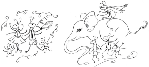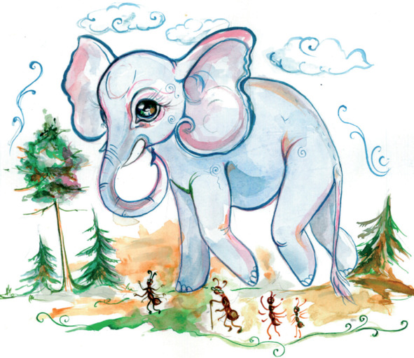 Сюжет тебе готов!С фонариком под одеялом,Не надо!Толку мало.Как-то муравьишки,Прочитали в книжке,Что на свете есть слоны,Что огромные они…Будто бы они живутГде-то рядом, прямо тут!Будто рост у них таков —Сильно больше муравьёв.Даже больше, чем травинки,И соринки, и песчинки…Выше веточек сосныЭти самые слоны!Всeх известье взволновало,Нам соседей не хватало!Жили-были, вот те на —Не заметили слона!Чуть немного отвлеклись,Вот, пожалуйста – сюрприз!Если даже больше нас,То тогда во сколько раз?Нам вершина лишь виднаВдоль лежащего бревна…Если выше этот слон,Да откуда ж взялся он?Что же он такого ест,Что растёт аж до небес?