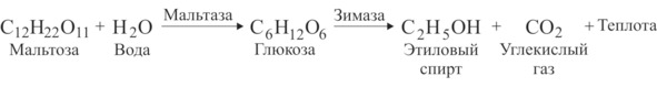 На самом деле формулы спиртового брожения выглядят гораздо сложнее, их запись занимает почти целую книжную страницу [5], но в приведённом упрощённом виде они вполне достаточны для понимания сути происходящих процессов.