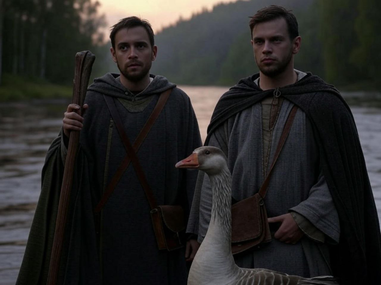 В дремучих лесах земли Славинии, где вековые дубы шептались о былых временах, жили два брата – Валера и младший его Лёва. С ними всегда был гусь Евдоким, что, к удивлению всех, чуял беду наперед.