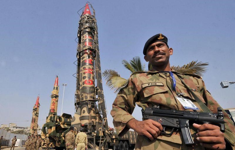 Этнический пакистанец на фоне пакистанского ядерного оружия.