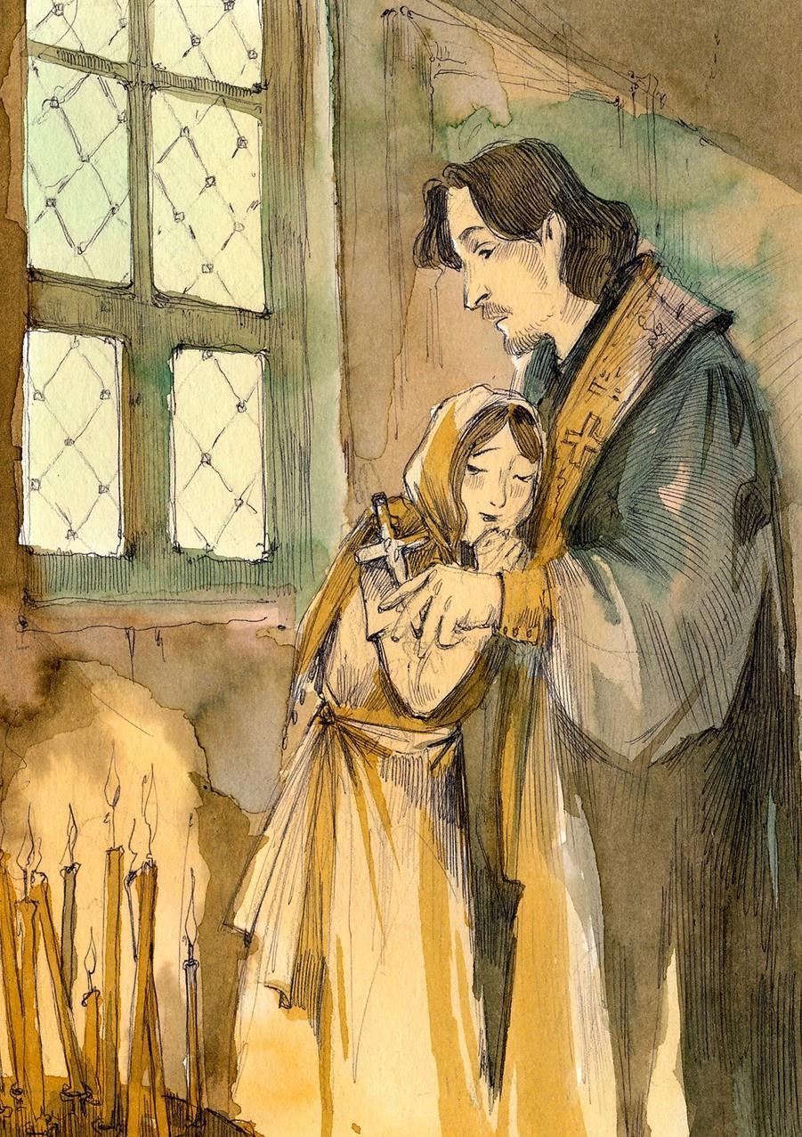 На этих словах Роман Романович улыбнулся. Неожиданно священник посмотрел на декольте девушки, но тут же
