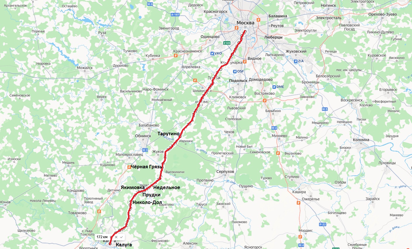 В начале XIX века из Москвы в Калугу вели три основные дороги: Старая Калужская через Пахру, Тарутино и Недельное, Новая Калужская, она же Боровский тракт, через село Фоминское (ныне г. Наро-Фоминск) и Малоярославец, Тульская через Серпухов и Тарусу.