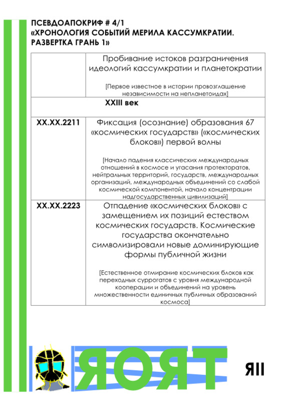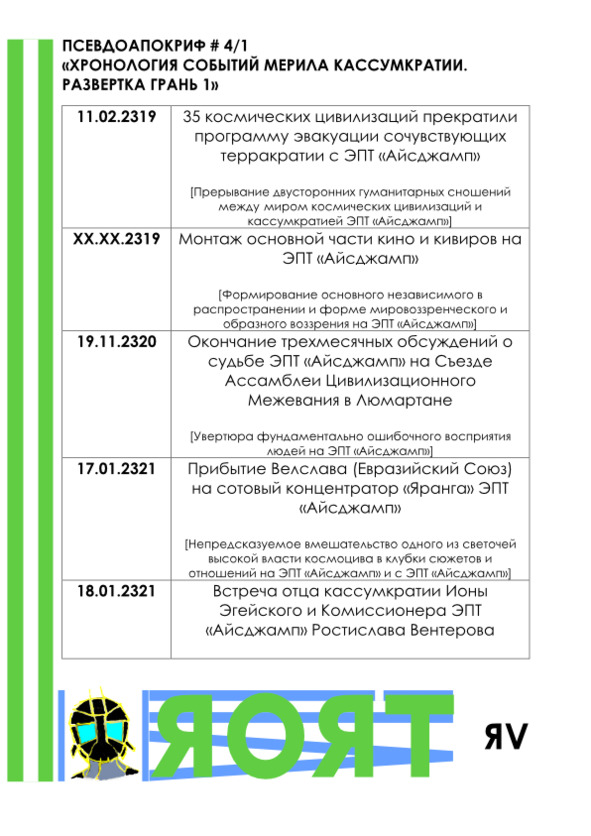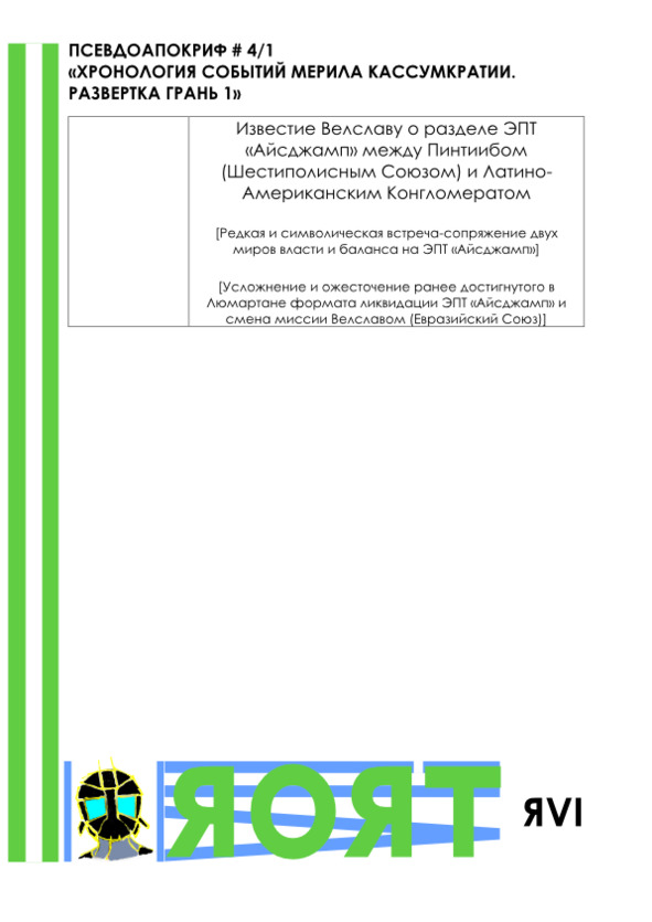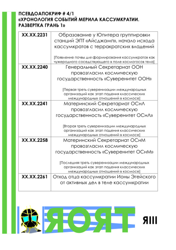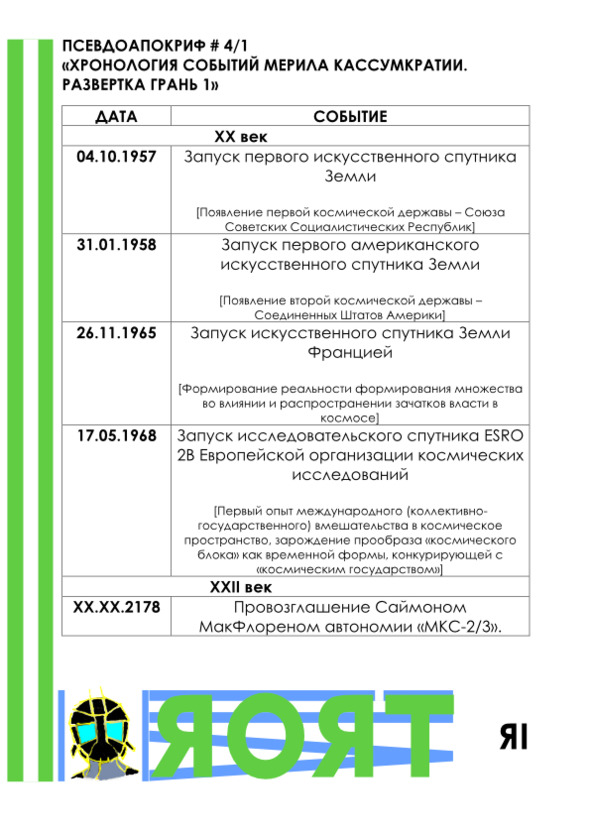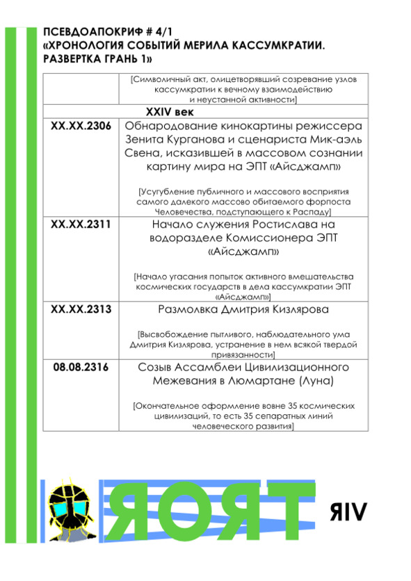 ПСЕВДОАПОКРИФ #4/1 «ХРОНОЛОГИЯ СОБЫТИЙ МЕРИЛА КАССУМКРАТИИ. РАЗВЕРТКА ГРАНЬ 1»