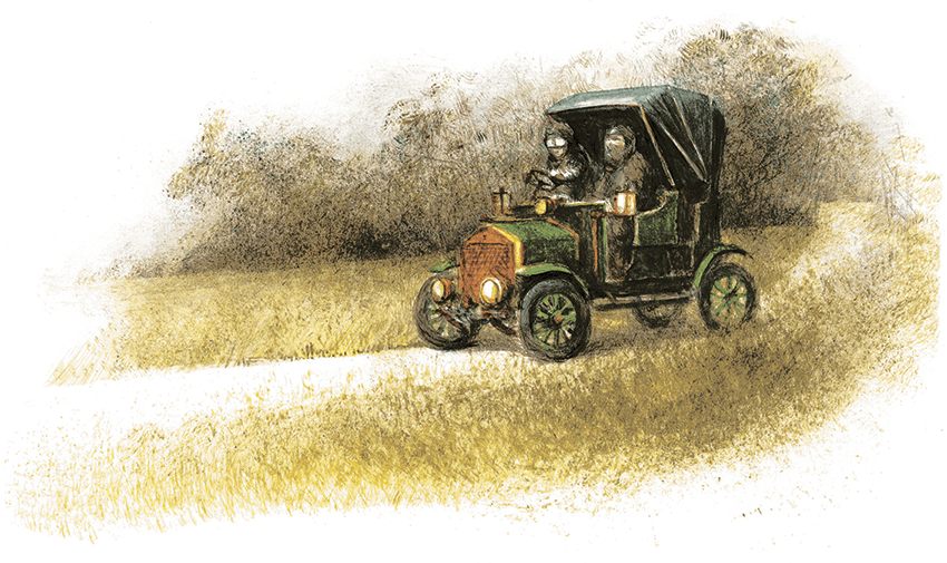 – Вот это по мне! – воскликнул довольный Жаб. – Большая жизнь и широкий мир, которых я был так долго лишён, приветствуют меня. Я остановлю их, членов автомобильного братства, сплету какую-нибудь историю вроде тех, что выручали меня до сих пор, а когда они непременно пригласят меня сесть в машину, я к той же истории добавлю ещё что-нибудь и, если мне повезёт, подъеду на автомобиле к Жабсфорду. Вот Барсуку нос утру!