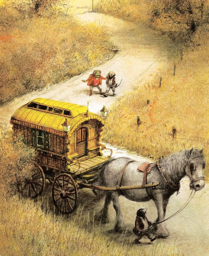 Они спокойно двигались вдоль обочины. Крот беседовал с конём (тот постоянно жаловался, что лишён всех радостей путешествия), Жаб и Водяной Крыс шли за фургоном и разговаривали. То есть разговаривал Жаб, а Крыс время от времени вставлял: