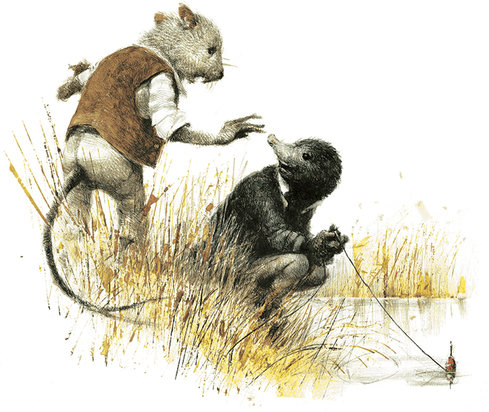 Назавтра Крот, вставший поздно и не склонный серьёзно раздумывать о чём бы то ни было, удил на берегу рыбу, когда после нескольких визитов к друзьям и обмена новостями его нашёл Крыс.
