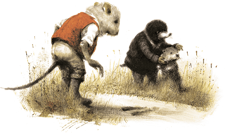 – Пойдём, Крыс! – окликнул его Крот. – Вспомни, что бедный Выдр так и сидит у переправы!