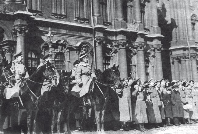 Генерал Л. Г. Корнилов (в центре, верхом) – Главнокомандующий войсками Петроградского военного округа. 1917