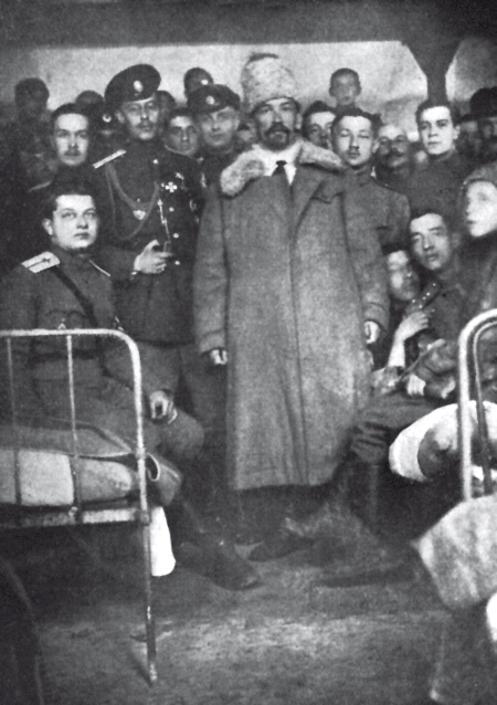 Генерал Л. Г. Корнилов (1) и полковник М. О. Неженцов (2) в казарме Корниловского ударного полка. Новочеркасск, декабрь 1917