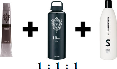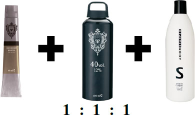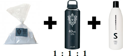 2. Смешать обесцвечивающий препарат с 12 % окислителем и шампунем в равных пропорциях.