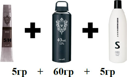 2. Для нейтрализации желтого фона осветления необходимо смешать краситель 5/Н с 12 % окислителем и шампунем в соотношении: