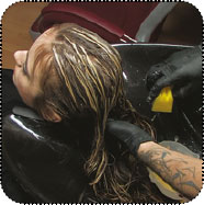 Поэтапное выполнение:1. Хорошо смойте водой краситель, желательно не применяя шампуня (если наносить цветовую баню после фиксации цвета, то цветовое проявление будет чуть дольше). Если вы корректируете работу, которая ранее была выполнена на волосах, то увлажните волосы. Данный тип цветовой бани обязательно наносится на влажные волосы.