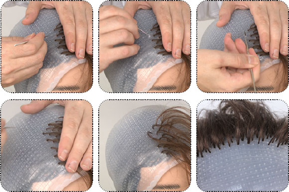 4. Заведите крючок в отверстие перпендикулярно касательно головы (под 900). Выполните круговое движение (без давления!) по коже головы (радиус не превышает 0,7 см). Осторожно вытяните образовавшуюся петлю наружу. Если осталась небольшая петля, аккуратно вытащите ее. Густота прядей должна быть одинакова. Рисунок набора пряди индивидуален (по желанию мастера).