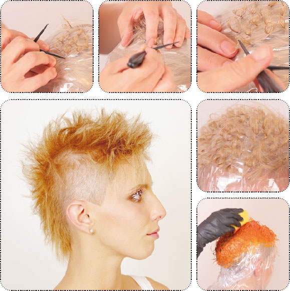 2. При использовании обесцвечивающих препаратов, накрывая пленкой, либо полиэтиленовой шапочкой, выполните небольшое количество отверстий (во избежание набухания и излишнего нагрева красителя во время реакции)