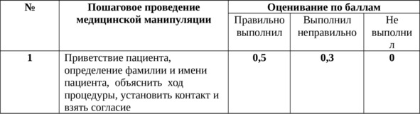 Промежуточный и итоговый контроль включает перечень разработанных параметров профессиональной деятельности по освоению определённого умения в виде чек- листов (check-list), где указывается: коммуникативные навыки, цель, показания, противопоказания, осложнения, оснащение, алгоритм действия, спросил ли студент о состоянии пациента после процедуры.