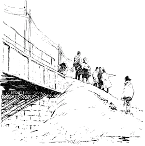 Высокая насыпь закрывала горизонт – и корабля не было видно. Только добежав до насыпи, Куприянов вспомнил, что корабль опустился в пяти километрах от железной дороги. И действительно, когда задыхающиеся люди взобрались на полотно, они были разочарованы. Белый шар был еле виден почти на самом горизонте. Но все же они долго стояли и молча смотрели на маленький шарик, на поверхности которого солнце зажгло нестерпимо блестевшую точку.
