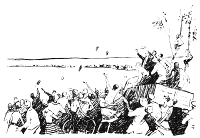 По мере того как шли минуты, усиливалось волнение. Люди не спускали глаз с корабля. Они не замечали зноя, готовые ждать и ждать. Время остановилось для них.