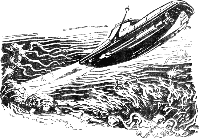 Радиомаяк работал с большими перерывами, но Зайцев уверенно вёл лодку. Теперь, когда особенно торопиться было некуда, Баландин и его спутники могли сколько угодно наблюдать подводную жизнь. Вперёд подвигались очень медленно и часто останавливались.