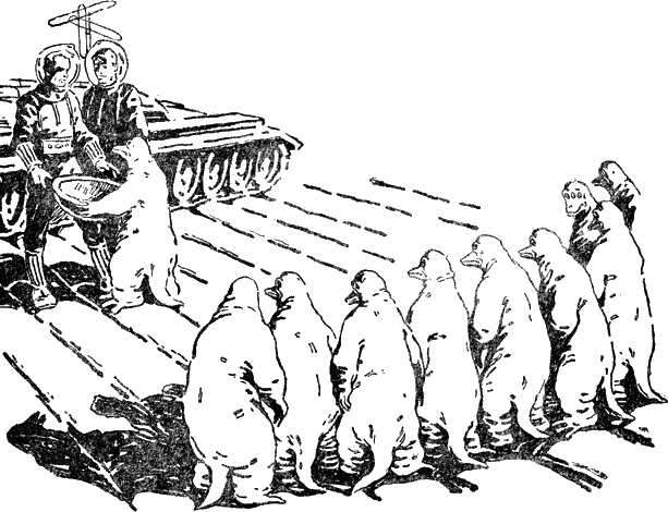 Романов сел за рули управления. Белопольский остался с венерианами и жестом объяснил им, что надо отойти к стене. Они послушно выполнили указание. Язык жестов пока что с успехом заменял слова. Это происходило потому, что основные жесты существ, наделённых разумом и руками, не могут сильно отличаться. Они не выдуманы, а подсказаны природой.