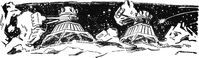 Они молчали, инстинктивно прислушиваясь. Слуховые аппараты их шлемов восприняли бы малейший шорох, но, кроме дыхания товарища, ни тот, ни другой ничего не слышали. Да и откуда могли бы взяться звуки жизни на «мёртвом» звездолёте? Может быть, там, где помещались чудесные, автоматы, обладающие «зрением» и «разумом», проявилась бы каким-нибудь звуком их загадочно сохранившаяся жизнь. Но здесь царила полная тишина.