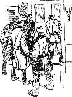 Капитан лежал на полу. Половину офицеров отделял от двери в коридор стол для заседаний, как нарочно покрытый КРАСНЫМ сукном. Остальные ни за что не покинули бы товарищей в опасности.