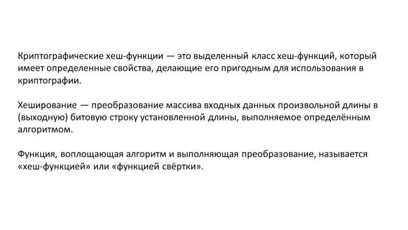 Начнем мы свое обсуждение с криптографических хеш-функций. Мы поговорим о том, что они собой представляют, и каковы их свойства. А потом мы обсудим их приложения.