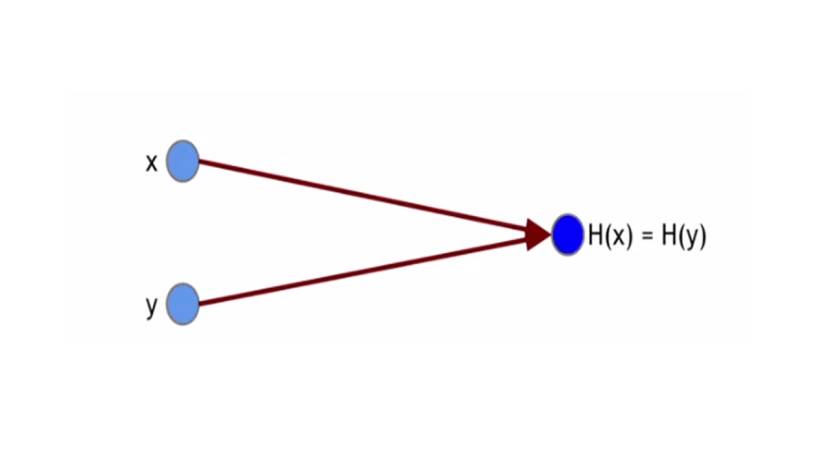 Если мы знаем, что x и y имеют одинаковый хеш, тогда можно с уверенностью предположить, что x и y одинаковы. И это позволяет нам использовать хэши как своего рода дайджест сообщений.