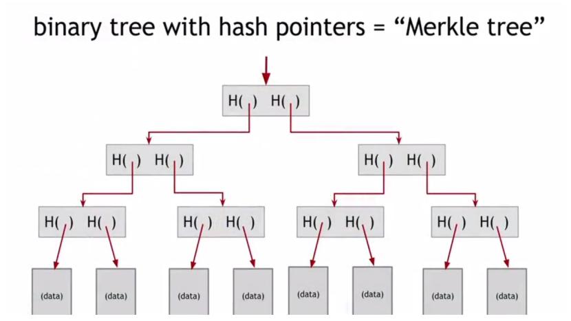 Теперь, еще одна полезная структура данных, которую мы можем построить с помощью хеш-указателей, является двоичным деревом.
