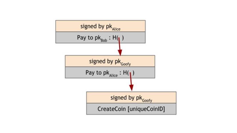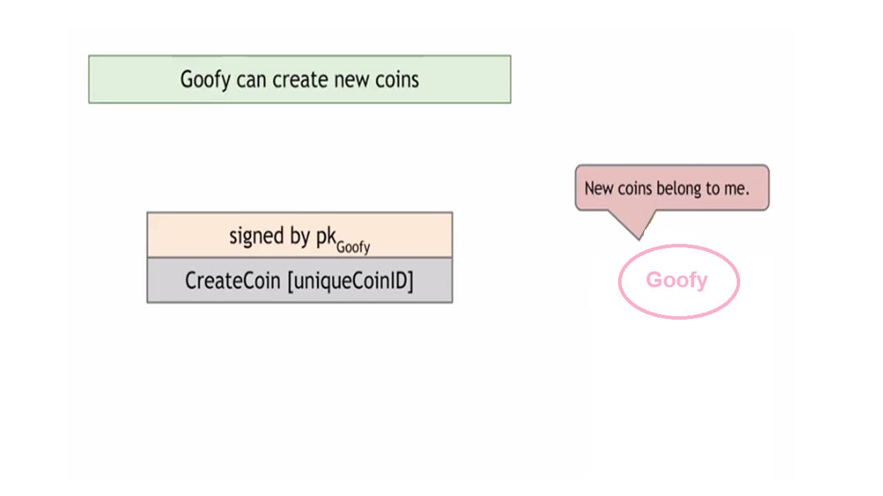 Кто угодно может проверить, что монета содержит действительную подпись Goofy для утверждения CreateCoin и, следовательно, она является действительной монетой.