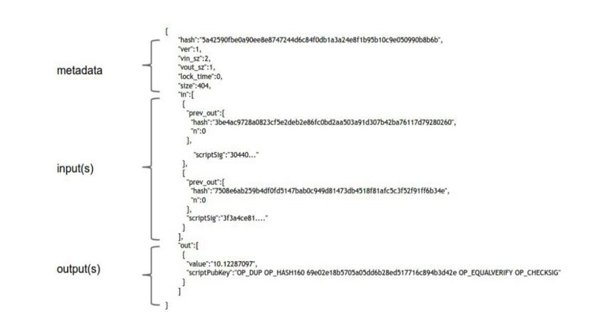 Теперь, давайте в деталях рассмотрим, что представляет собой транзакция в биткойне, его центральная часть.