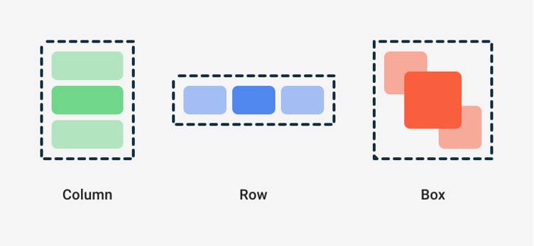 Основными layout в Jetpack Compose являются Box, Row, Column. Также Compose позволяет использовать аналоги Constraint Layout. Все эти компоненты inline Composable – функции. Это значит, что другие Composable функции могут быть вызв