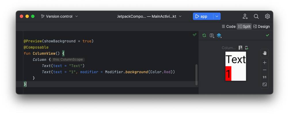 Аннотация Preview отображает в боковом меню сверстанные элементы. Если необходимо отобразить дополнительно фон View, укажите showBackground = true. После внесения изменений нужно нажать build&refresh для обновления Preview, если изменения небольшие, то Preview обновится автоматически.