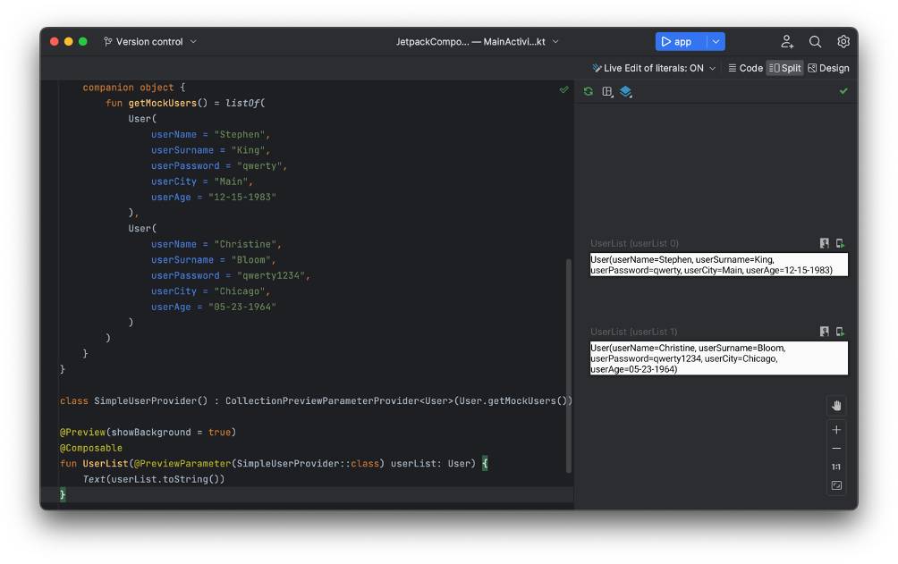 Так для создания provider-класса необходимо наследоваться от PreviewParameterProvider<T> и переопределить значение по умолчанию. Preview Parameter принимает provider класс и параметр – максимальное количество элементов, которые он должен отобразить.