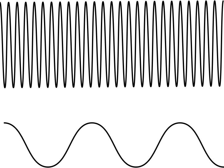 Чем выше частота, тем больше информации в единицу времени можно передать. Но тем более она подвержена помехам среды и поэтому на меньшее расстояние можно передать сигнал. Чем частота меньше, тем она менее подвержена помехам среды и тем дальше она распространяется. Чем выше амплитуда, тем больше потенциала во фронте волны. Тем больше она несёт энергии и меньше подвержена влиянию среды.