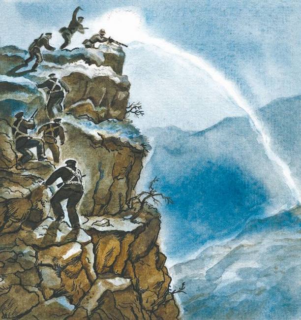 В сумерки он с пятью разведчиками ушёл к скале. Мы ждали его без сна.