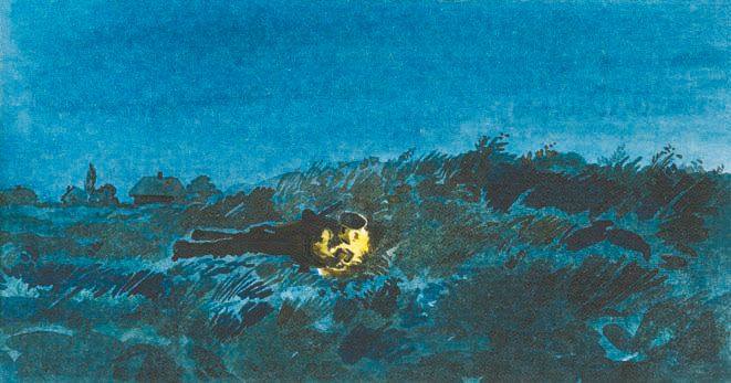 Через час проволока привела в бурьян. Всмотревшись в рассветную мглу, Негреба увидел трёх коней и поодаль часового. Кони, почуяв человека, захрапели, и пришлось долго выжидать, пока они привыкнут.