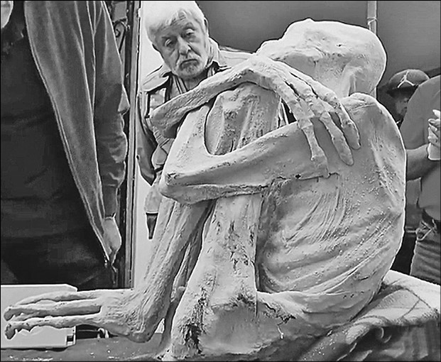 Чаще всего в исторической литературе можно встретить упоминания о появлении пришельцев-колонизаторов на территории Древнего Египта. Однако фактических подтверждений этой теории долгое время найдено не было. Все изменилось после обнаружения в одной из египетских гробниц нескольких необычных мумий. Генетические исследования показали, что это не человек, а неизвестное земной науке существо. Одна из мумий при жизни не имела языка, носа и ушей, зато обладала широким ртом и высоким ростом около двух с половиной метров. Известный археолог Гастон де Виллар, обследовавший мумию, датировал ее возраст в четыре тысячи лет. При этом, по мнению ученого, похоронен инопланетянин был как знатный вельможа. Вокруг него располагались мумии слуг, многочисленные украшения и бытовые предметы. Среди них удивленные исследователи обнаружили необычный металлический диск, покрытый загадочными письменами явно не земного происхождения. Но самым удивительным оказался костюм вельможи, состоящий из металлических волокон, и пластиковая обувь. Вывод египетских ученых был однозначным: перед ними инопланетянин, умерший в Древнем Египте.