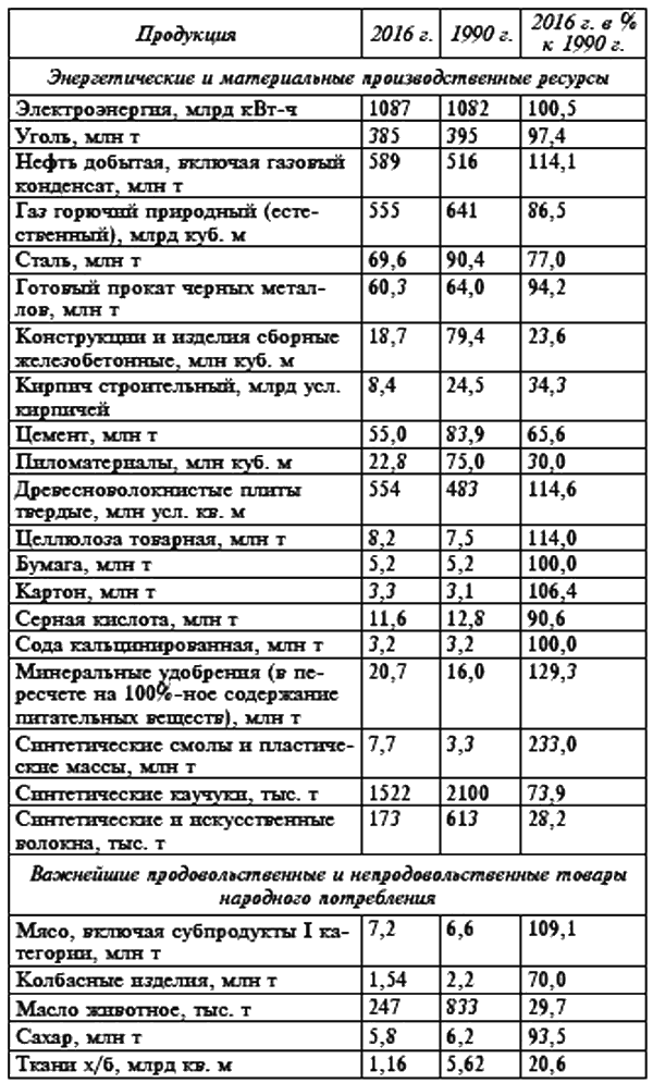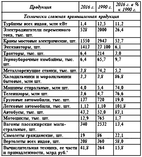 Таблица 2Динамика производства основных видов промышленной продукции в России[6][7]