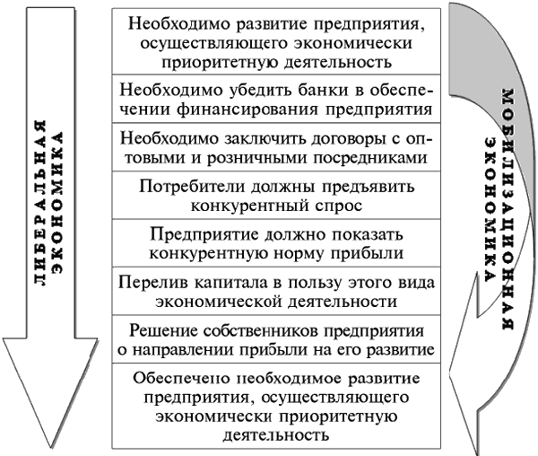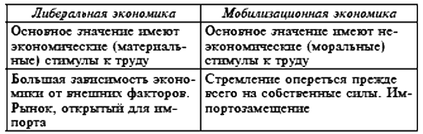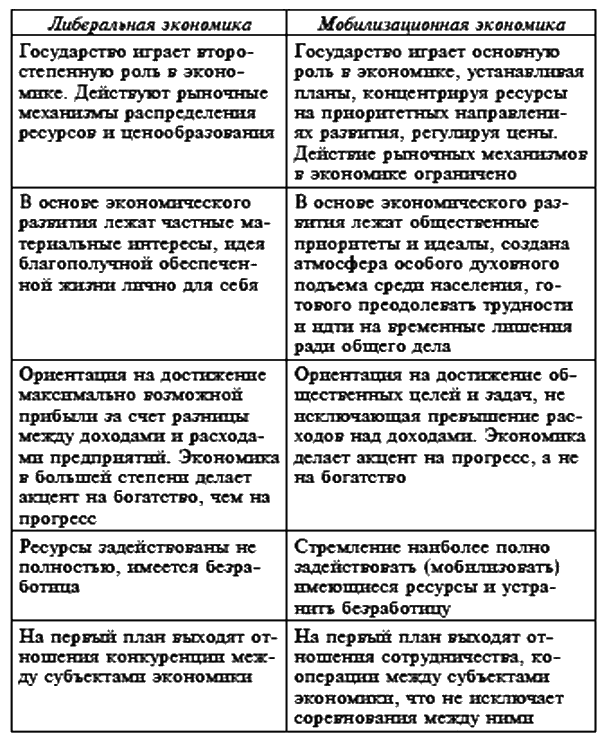 Таблица 3Сравнительные характеристики либеральной и мобилизационной экономики[8]