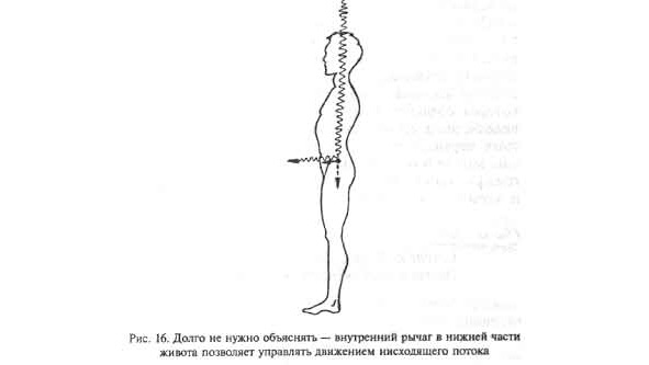 Сосредоточьтесь, расслабьтесь, почуветвуйте, как сквозь седьмую чакру в ваше тело из глубин Космоса входит вертикальный нисходящий поток энергии и, проходя вплотную к позвоночнику, доходит до первой чакры, через которую уходит в землю. Начинайте делать вдохи и выдохи и ощутите, как при выдохе нисходящий поток усиливается, как вы можете замедлять и ускорять его ход, делая вдохи то более, то менее интенсивно. Когда ощущение потока станет ясным и четким, ощутите, что поворачивающаяся стрелка установлена у вас в области третьей чакры, чуть выше пупка. Поверните стрелку вперед. Почувствуйте, как энергия нисходящего потока начинает вырываться через третью чакру.