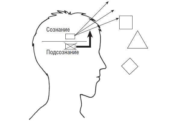 Рис. 7. Причина кармы: чувство вины. Чем сильнее сознательное желание, тем отчаяннее подсознательное отвращение человека от его достижения