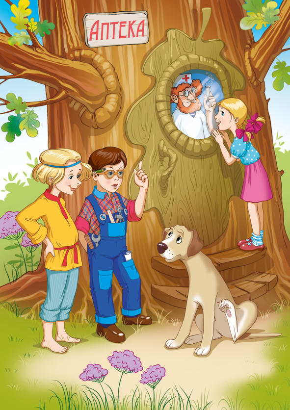 Выдаёт захворавшим коротышкам порошки и пилюли. И никаких гарпунов и волнений. А насморк лечит – лучше всех в мире! Эта та самая аптека, что разместилась в дупле старого дуба.