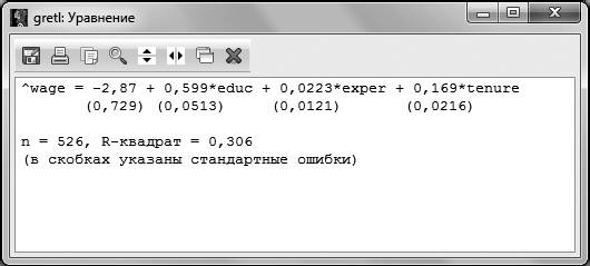 По распечатке, представленной на рис. 2.2, мы можем выписать получившееся уравнение регрессии: