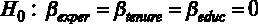 Сформулируем гипотезы для проверки незначимости регрессии в целом в рассматриваемом примере [файл с данными wage1.gdt] модели