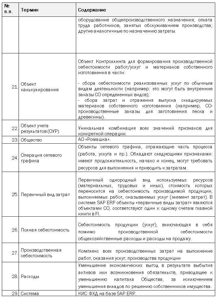 Назначение настоящей методики – раскрытие порядка учета затрат и калькулирования фактической себестоимости по видам деятельности АО «Ромашка» с учетом изменений в способах ведения учета, обусловленных функциональными особенностями КИС ФХД на базе SAP ERP, а также требований подготовки следующей отчетности: