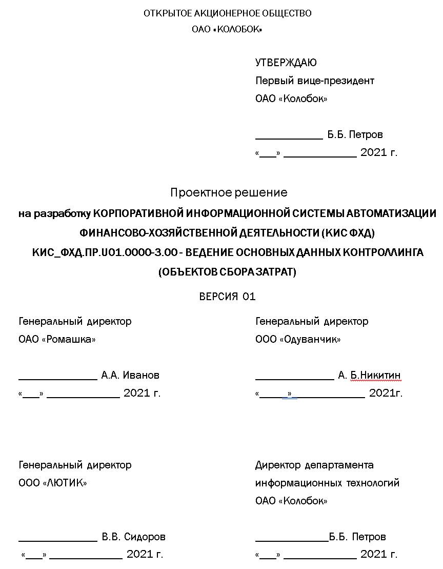 Данное проектное решение определяет основные данные и требования по настройке модуля «Контроллинг» КИС ФХД для ОАО «Ромашка».